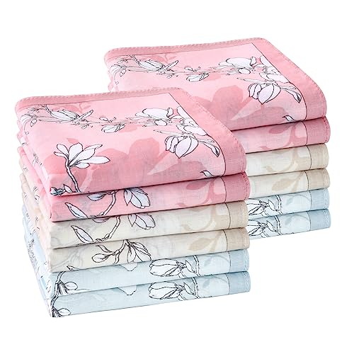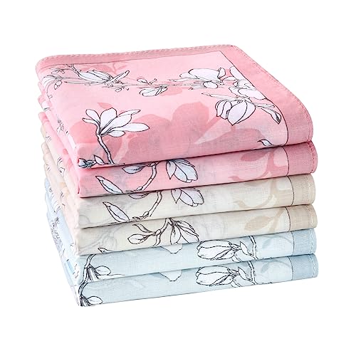 HOULIFE Ladies Handkerchiefs – Floral Handkerchieves Ladies, Hankerchief Womens Cotton, Premium 100% 60S Combed Cotton Colorful Flower Print Hankies for Wedding Party, 45x45cm/18x18’’, 6/12 Pieces