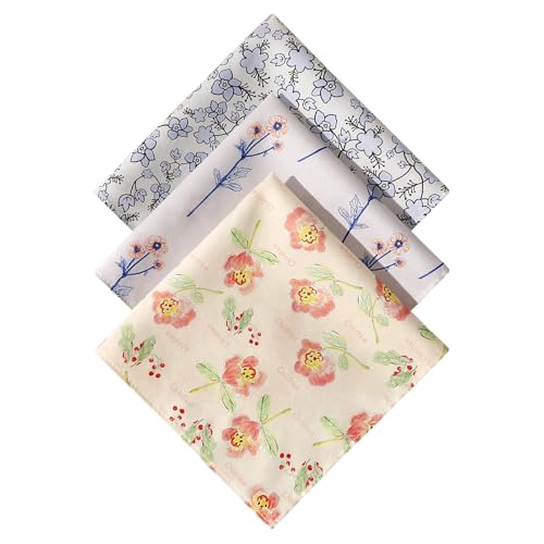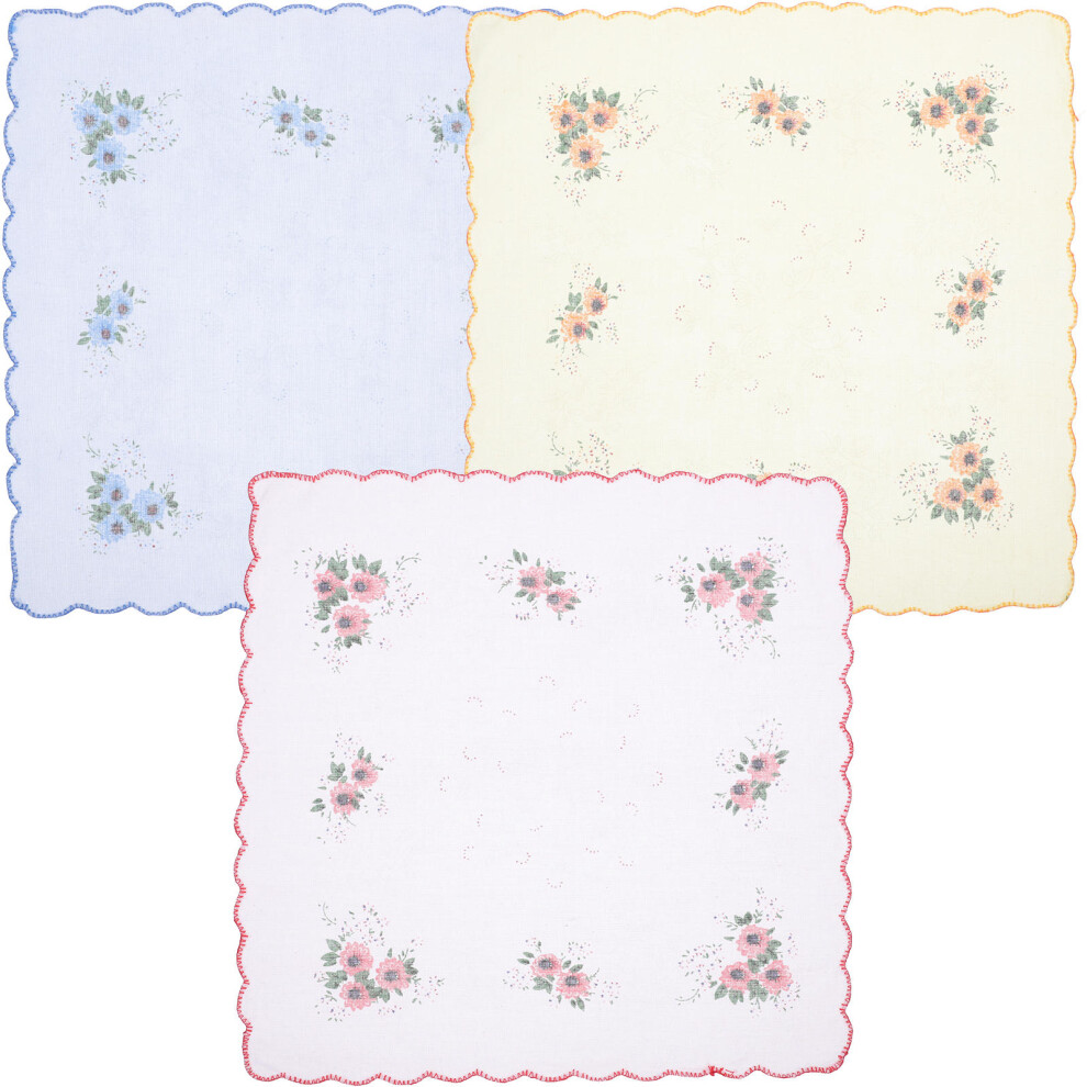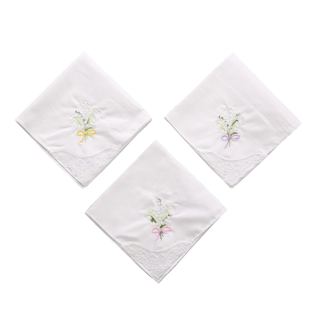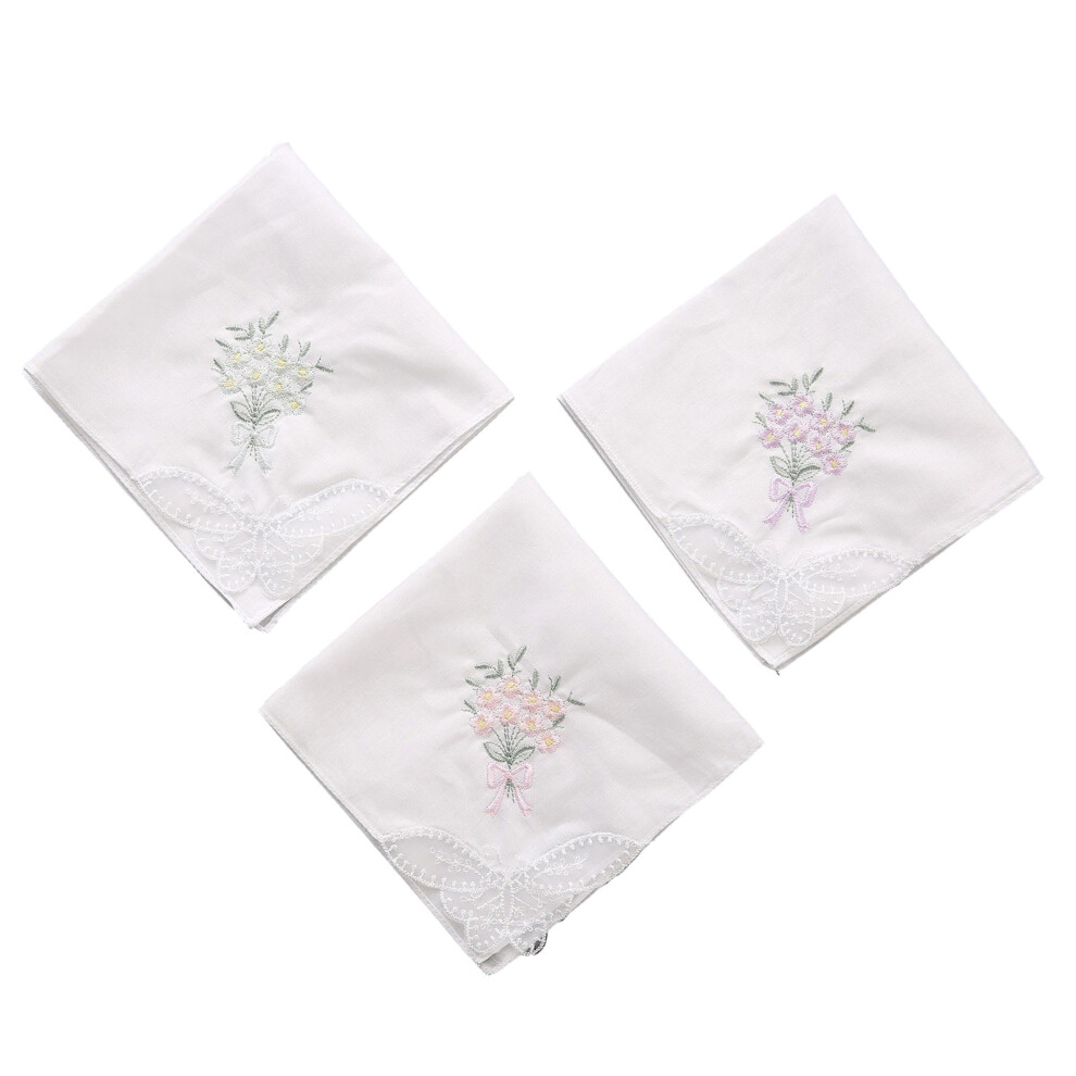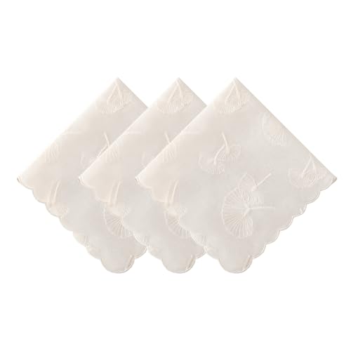 Giantree 3 Pcs Ladies' Vintage Floral Handkerchiefs - Women's Embroidery Cotton Pocket Square Towels for Wedding Party