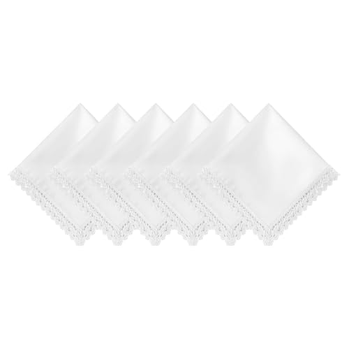 HOULIFE Ladies 100% Cotton Handkerchiefs Soft Pure White Lace Wedding Hankies for Women 6/12/18 Pieces 10"x10" (10x10/25x25cm - 6 Pieces, White 6)