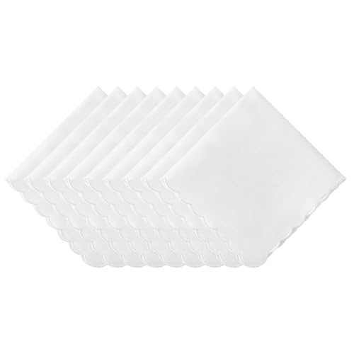 HOULIFE Pure White Handkerchiefs Soft Cotton Women Handkerchief Ladies Hankies with Wavy Edge Woman Hanky for Wedding Party