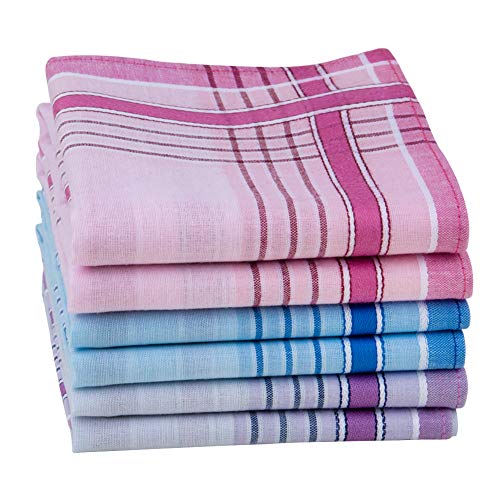 HOULIFE Ladies 100% 60S Combed Cotton Handkerchiefs Womens Soft Stripe Checkered Pattern Coloured Plaid Hankies for Wedding Party 6/12 Pieces 28x28cm Christmas Gifts