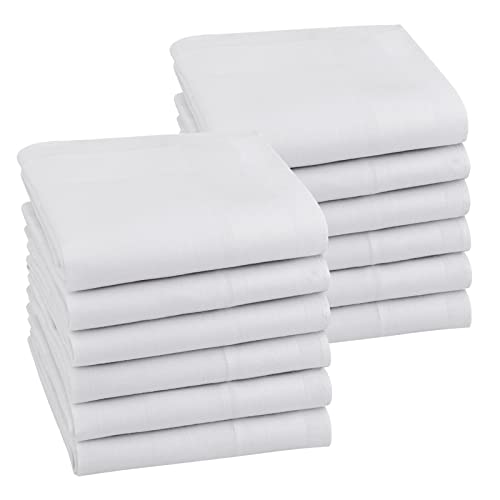 HOULIFE Mens Handkerchiefs - Ladies Handkerchief, Solid Colour Hankerchiefs, 100% 60S Cotton Soft Hankies for Dad Grandad Women Wedding, 40x40cm/16x16’’ (White, 12 Pieces)