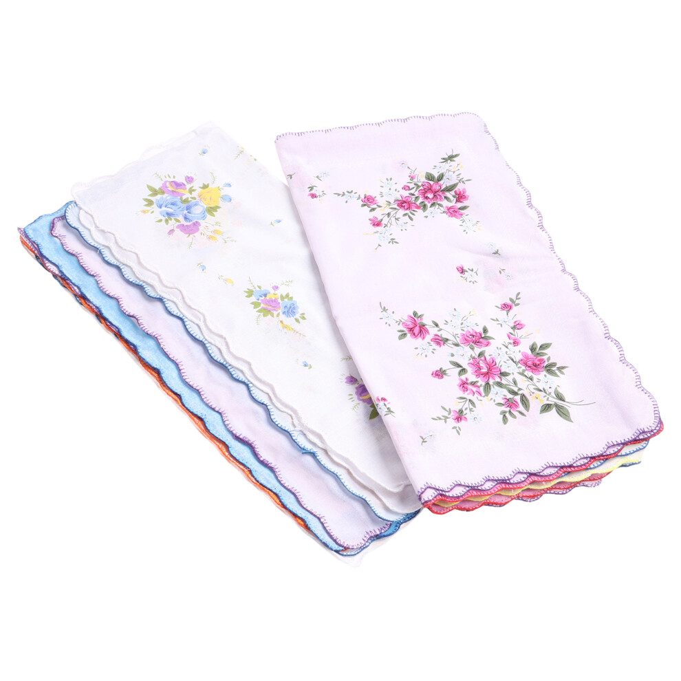 10pcs Women Vintage Floral Print Colorful Ladies Handkerchiefs Wedding Handkerchief