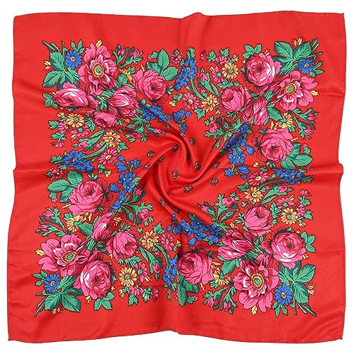 HOULIFE Satin Cotton Handkerchief for Women Floral Womens Handkerchiefs Vintage Flower Women’s Hankies Decorative Retro Ladies Hanky, 35x35cm