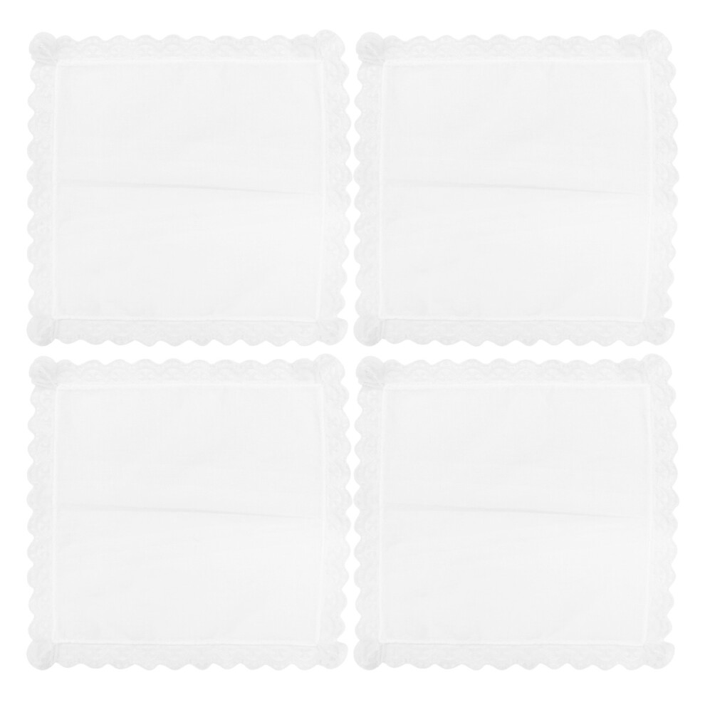 Aeaocvo 4PCS White Handkerchiefs for Women, Pure White Soft Cotton Ladies Handkerchiefs for Wedding, Embroidery Lace Handkerchief for Women for Afternoon Tea Party