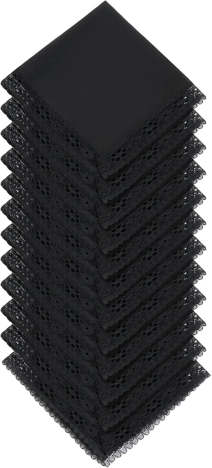 HOULIFE Black Handkerchiefs - Funeral Lace Ladies Handkerchief, Small Hankerchieves Ladies, Embroidered Lace Hankies, 100% 60S Cotton Womens Floral Hankies, 6/12 Pieces, 25x25cm/10x10’’
