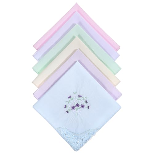 HXMJIED 6-Piece Ladies Cotton Handkerchiefs - Soft, Washable Lace Handkerchiefs for Weddings