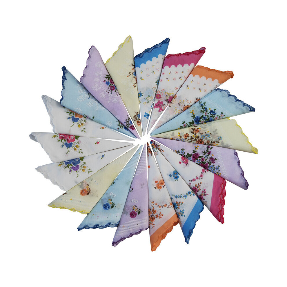 Women Soft Pocket Handkerchiefs Ladies Hankies Vintage Floral Print Handkerchiefs (30 Pieces)
