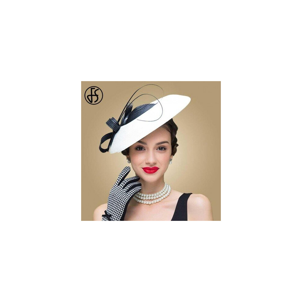 (Black White Fedora) FS Fascinators Black And White Weddings Pillbox Hat For Women Straw Fedora Vintage Ladies Church Dress Sinamay Derby Hats