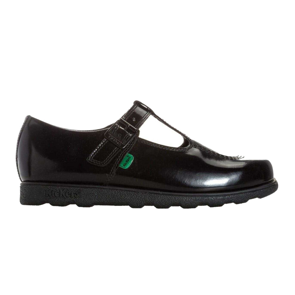 (UK 6 / EU 39) Womens Kickers Kick Lo Aztec T Bar Patent Leather Ladies Shoes Black School Work