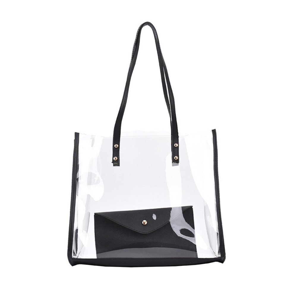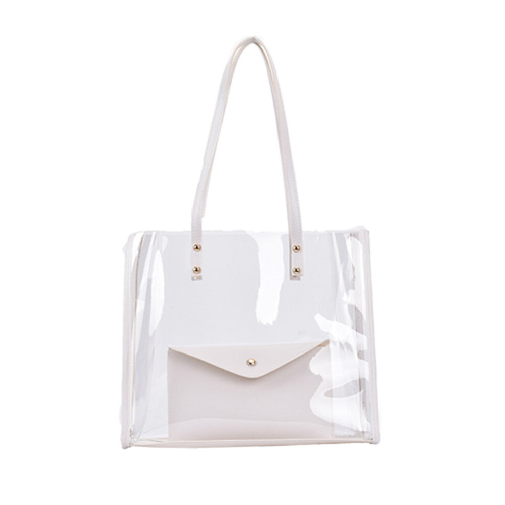 Fashion Women Transparent Composite Bags Shoulder Shopping Tote Bag Pure Color Pouch Purse Casual Ladies Large Capacity Handbags