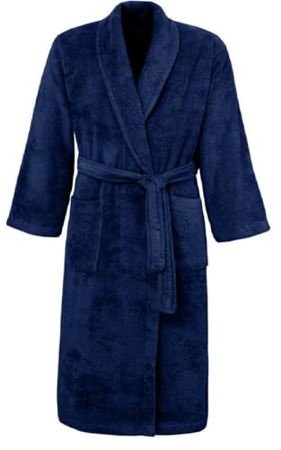 Unisex 100% Egyptian Cotton Luxury Bathrobe Terry Toweling Dressing Gown Shawl Collard Super Soft Lightweight Mens and Ladies Hotel Spa Robes (UK, Alpha, One Size, Regular, Regular, Navy Blue)