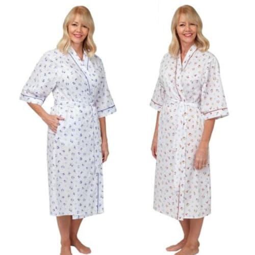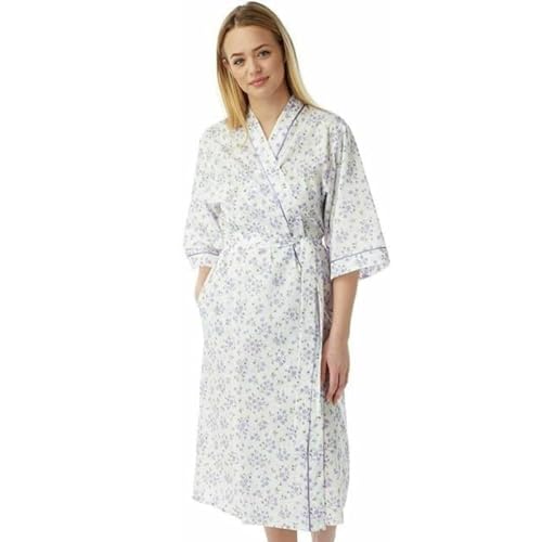 Trenzeo Ladies Floral Poly Cotton Nightdress OR Dressing Gown – Wrap Robe Nightwear for Women Soft Lightweight Size 10–30 Pink & Blue Comfort Sleepwear (UK, Numeric, 28, 30, Regular, Regular, Blue)