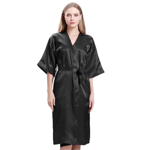 SHCNSJC Bride Silk Dressing Gown for Women UK Ladies Kimono Satin Robe Lightweight Japanese Wedding Dressing Gowns Pyjama Short, Black L