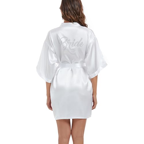 SHCNSJCBride Silk Dressing Gown for Women UK Ladies Kimono Satin Robe Lightweight Japanese Wedding Dressing Gowns Pyjama Short,White,L