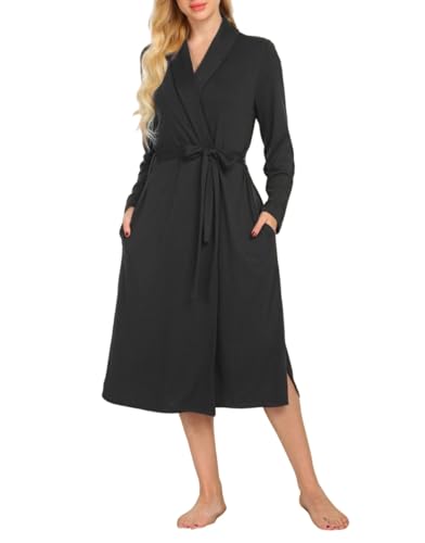 Ekouaer Ladies Dressing Gown Lightweight Short Thin Bathrobe Robe Super Soft Spa Hotel Loungewear With Pockets, Black, M