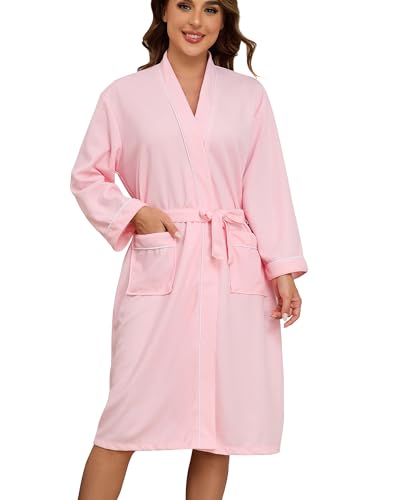 Starblazia Waffle Dressing Gown Ladies Housecoats Lightweight Women's Kimono Bathrobes Soft Nightwear for All Seasons Spa Sleepwear Hotel,L,Pink