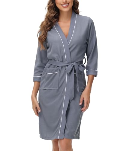 Starblazia Waffle Dressing Gown Ladies Housecoats Lightweight Women's Kimono Bathrobes Soft Nightwear for All Seasons Spa Sleepwear Hotel,M,Grey
