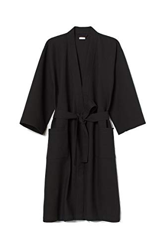 Starblazia Waffle Dressing Gown Ladies Housecoats Lightweight Women's Kimono Bathrobes Soft Nightwear for All Seasons Spa Sleepwear Hotel,XL,Black