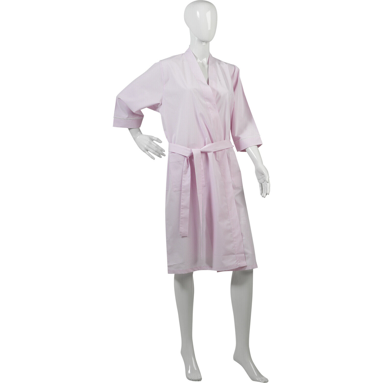 Ladies Lightweight Cotton Dressing Gown Striped Wrap Around House Coat Pockets