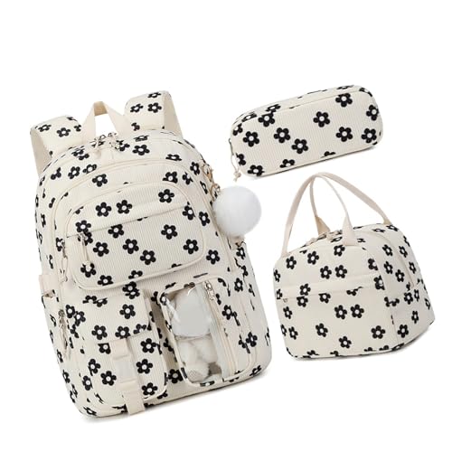 Ladies Backpacks for Women - 3 Piece Complete Student Backpack Set Including Double Layer School Bag With Lunch And Pencil Lightweight Durable Bookbag For Teenagers (A, 40x30cm)
