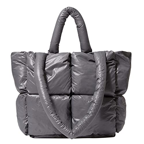 Ladies Large Quilted Bag Winter Soft Quilted Shoulder Bag Down Shoulder Bag Ladies Handbag Lunch Bag with Shoulder Strap (Grey, One Size)