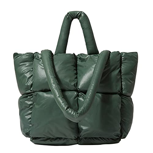 Ladies Large Quilted Bag Winter Soft Quilted Shoulder Bag Down Shoulder Bag Ladies Handbag Lunch Bag with Shoulder Strap (Green, One Size)