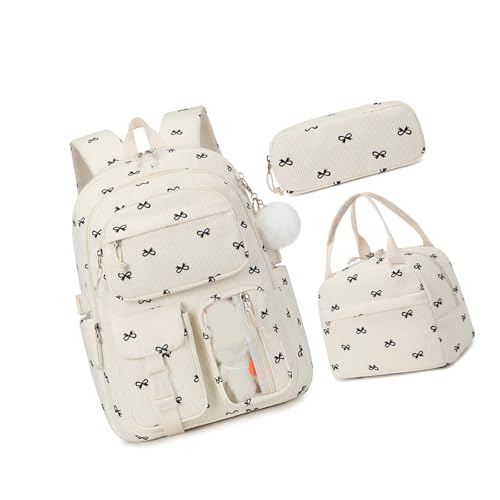 Ladies Backpack - Stylish Preppy Bow Backpack Set For Teen Girls With Matching Lunch Bag And Pencil Perfect For School College And Day Trips (One Size)