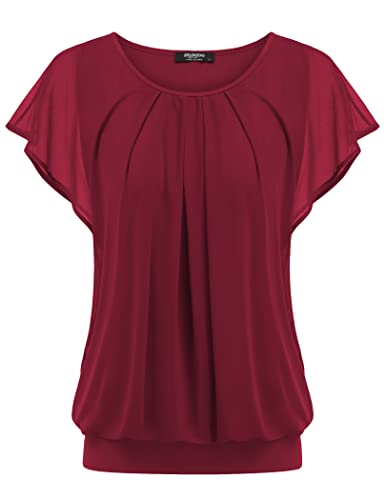 Zeagoo Womens Blouses Batwing Sleeves Mesh Ladies Tops Double-Layered Tunic Tops Loose Flowy Shirts Wine red M