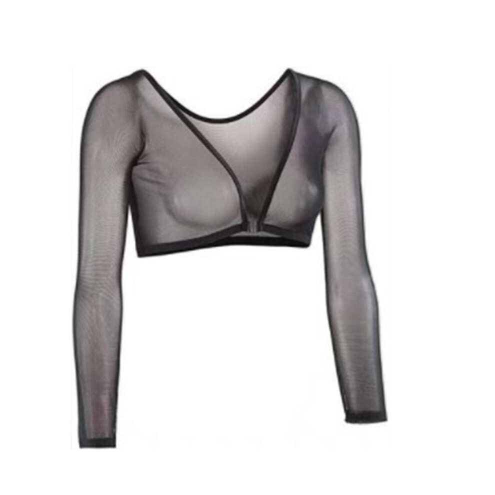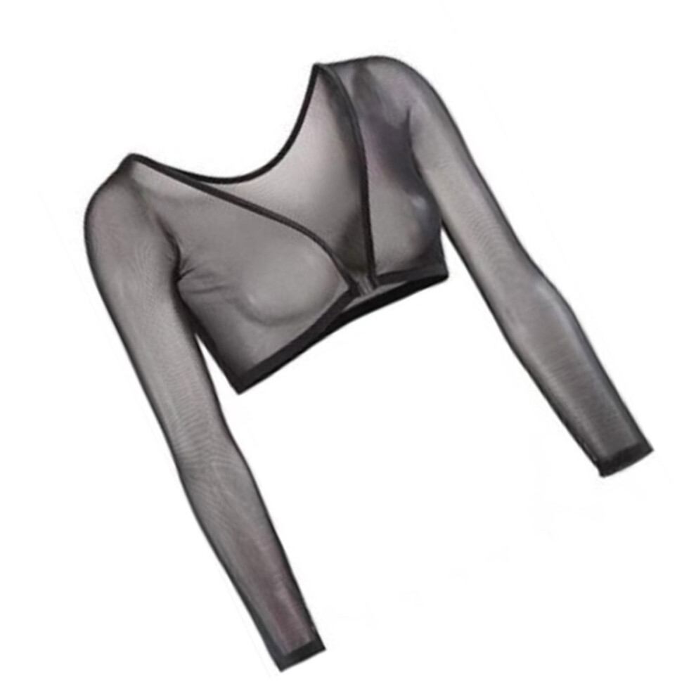 (M) Women Sexy T-Shirt Long Sleeve Ladies Mesh Tops Slimming Short Shirt