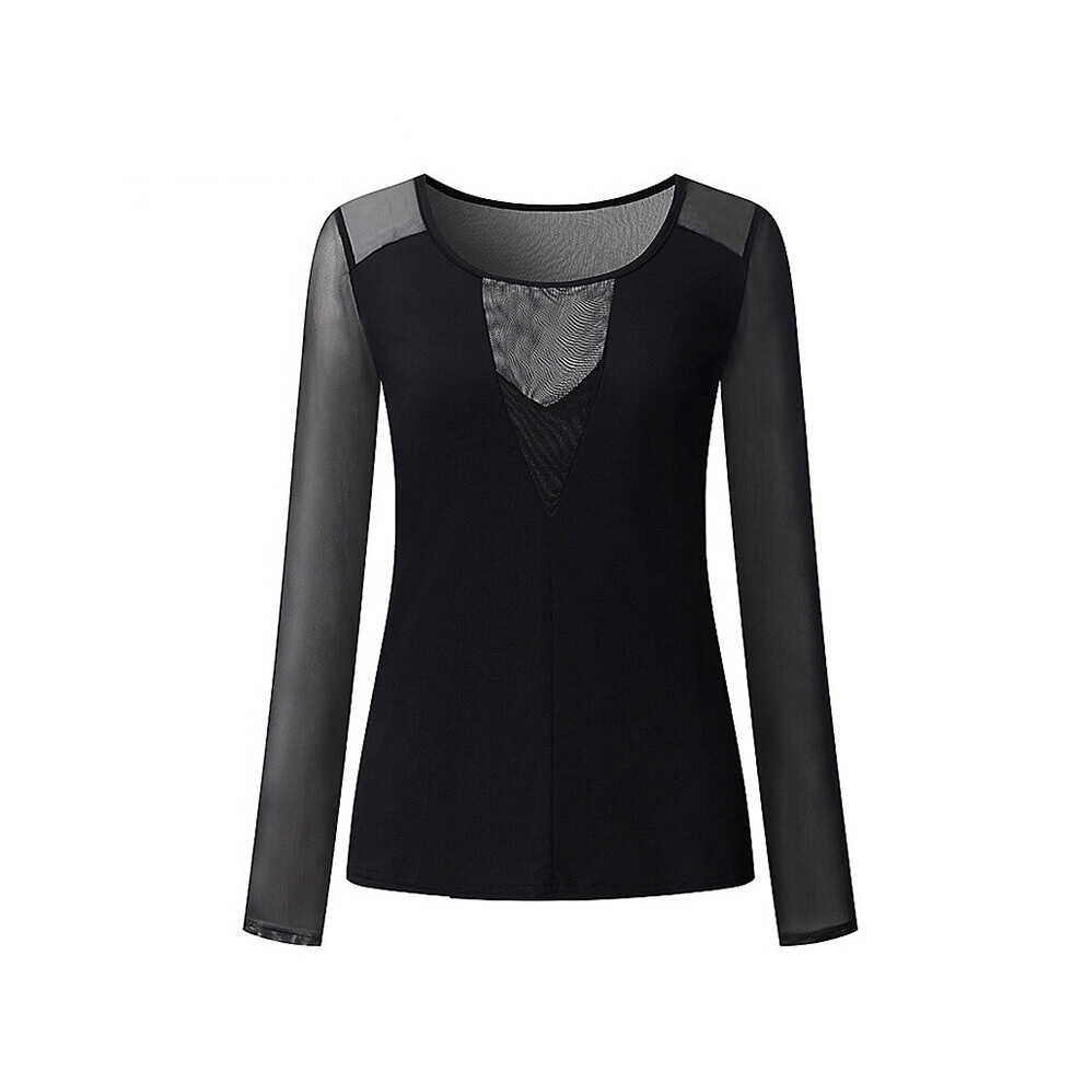 (XL) Women Sexy T-Shirt Black Long Sleeve Seamless Ladies Mesh Tops Shirt