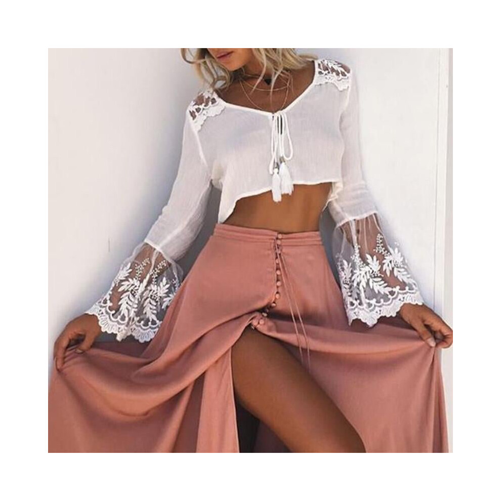 Long Sleeve Womens Boho Shirt White Lace Blouse 2017 Summer Ladies Dentelle Mesh Tops Femme Blusas Female Tunic Sexy Crop Tops