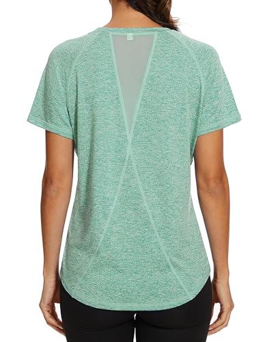 Gyabnw Ladies Gym Tops Women Short Sleeve Casual Workout Yoga Running Top Crew Neck Back Mesh Fitness Athletic Tee Shirts Green