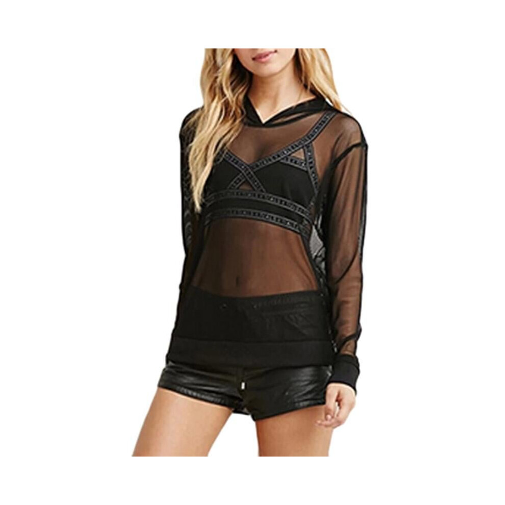 (S) Women Sexy T-Shirt Clubwear Long Sleeve Ladies Vest Mesh Tops Shirt
