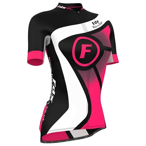 FDX Women’s Cycling Jersey - Breathable, Lightweight, Quick Dry Short Sleeve Cycle Tops - Full Zipper Bicycle Shirt with 4 Pockets, Running, MTB Racing, Ladies Outdoor Sports Clothes (Pink, X-Small)