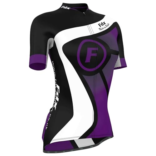 FDX Women’s Cycling Jersey - Breathable, Lightweight, Quick Dry Short Sleeve Cycle Tops - Full Zipper Bicycle Shirt with 4 Pockets, Running, MTB Racing, Ladies Outdoor Sports Clothes (Purple, X-Small)