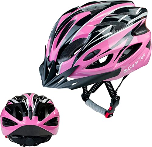 GearTek Bicycle Helmet With Sun Visor, Lightweight Adjustable Cycle Helmet Adult, Safety Mountain Bike Helmet Men Womens Ladies Unisex, MTB BMX Skateboard Scooter Cycling (Pink + Black)