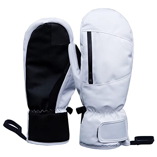 Ski Mittens Women Waterproof, Golf Mitts Men, Ski Gloves Ladies, Thermal Gloves Touch Screen, Cotton Winter Gloves Touchscreen Unisex With Zip Pocket Sport Cycling Mtb Running Extra Warm (L, White)