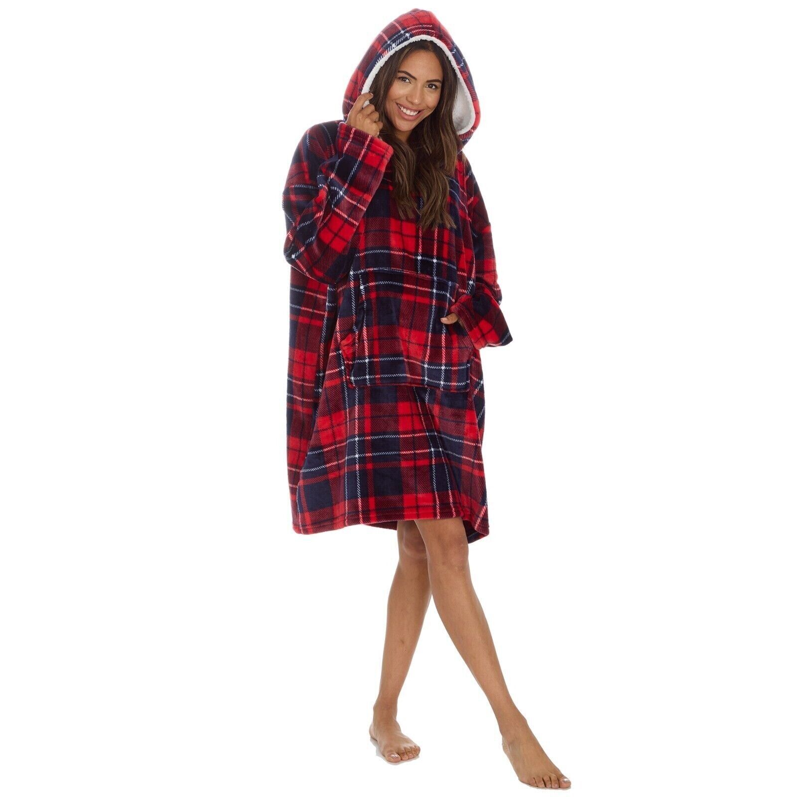 Unisex Men's Ladies Oversized Hoodie RED Tartan Snuggle Super Soft Warm Blanket