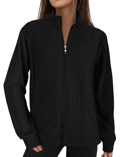Womens Cardigans Ladies Oversized Hoodie Full Zip up Jackets for Women UK Solid Sweatshirts with Pockets Winter Coats Women Hoodies with Pockets 2025 Fall Fashion Outfits Clothes Black