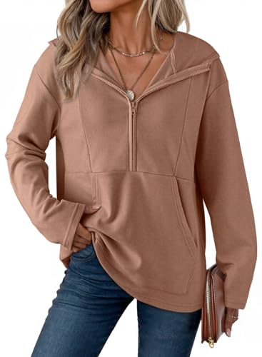 Dokotoo Women's Hoodies Half Zip Hooded Sweatshirts Warm Soft Fleece Womens Long Sleeve Tops Fashion Casual Women Pullover Sweatshirt Fall Winter Ladies Oversized Hoodie Top Oatmeal S