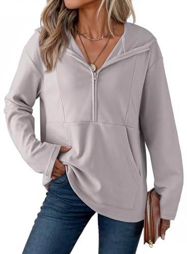 Dokotoo Women's Hoodies Half Zip Hooded Sweatshirts Warm Soft Fleece Womens Long Sleeve Tops Fashion Casual Women Pullover Sweatshirt Fall Winter Ladies Oversized Hoodie Top Grey XL