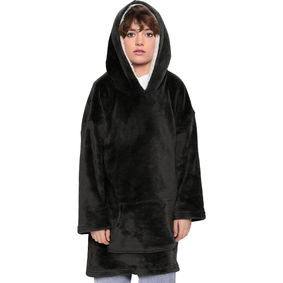 (One Size, Black) Men Ladies Oversized Hoodie Plain Snuggle Blanket