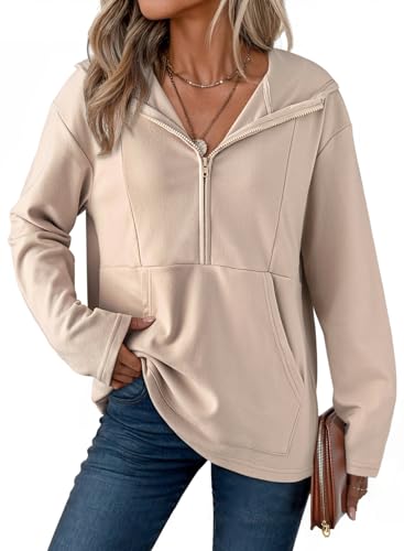 Dokotoo Women's Hoodies Half Zip Hooded Sweatshirts Warm Soft Fleece Womens Long Sleeve Tops Fashion Casual Women Pullover Sweatshirt Fall Winter Ladies Oversized Hoodie Top Oatmeal L