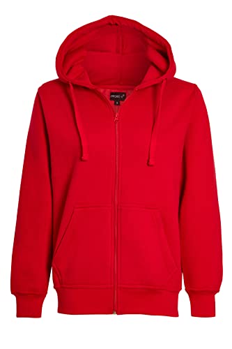 imporio 11® Women Ladies Plain Oversized Hoodie Top With Zip Hoodies Sweatshirt Top Jumper Fleece Jacket Hoodies UK 8-20 (L UK 14-16, Red)