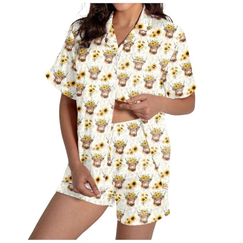 Ladies Pyjamas Size 12,Womens Pjs Sets,Women Pajama Sets for Daily Home - Soft Button Loungewear with Flower Print Short Sleeve V-Neck Short Sleeve Shorts Set for All Seasons (White, S)