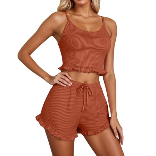 Ladies Summer Pyjamas - Women's Fashion Casual Summer Two Piece Set Solid Color Shorts and Tops Matching Outfit