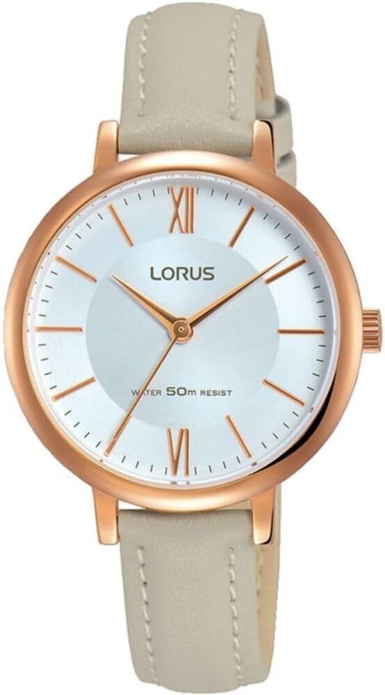 Lorus By Seiko Rose Gold Ladies Watch Sunray Dial and Grey Leather Strap RG264LX