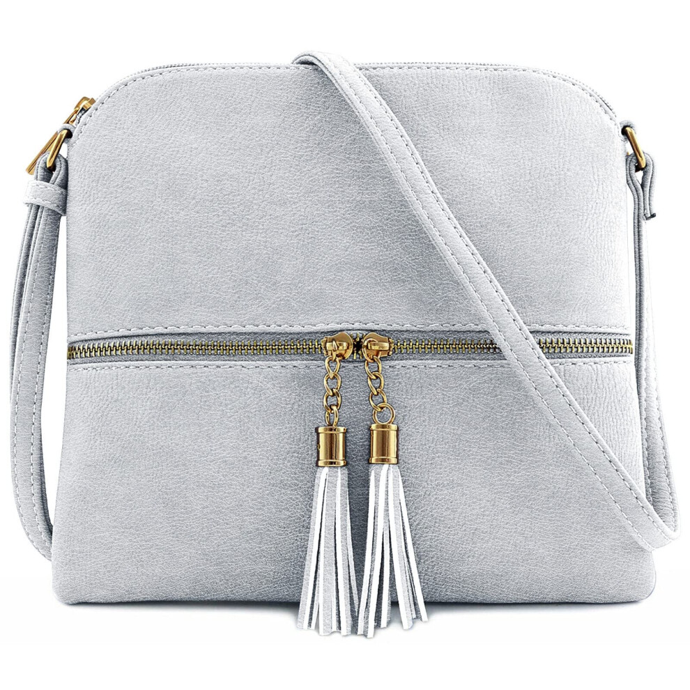 Jamie Bags Mini Crossbody Bags for Women, leather phone bag with long bag strap, Multipurpose Ladies Handbags & shoulder bags with Tassel (Grey)
