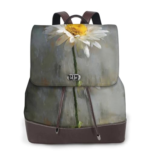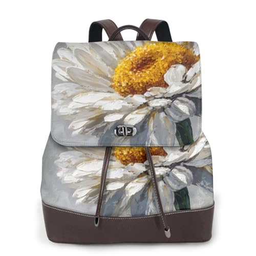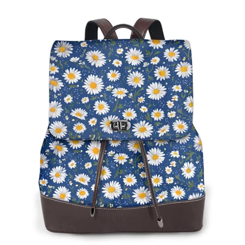 Simple Daisy Print Leather Women's Backpack Travel Bag Ladies Versatile Small Backpack Business Leisure,One Size